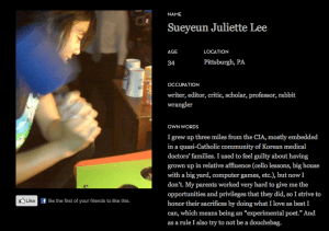 Hey All! I wrote a piece (Brainard-esque) about my experiences as an Korean American — it’s the sort of writing people don’t see often from me, but I thought it would be great to contribute and be a part of this resource. If you have some time today, please check it out. (Click image below).